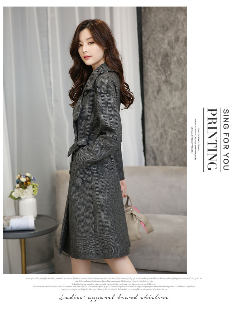 Autumn new Korean version of Slim bird coat jacket long paragraph woolen coat