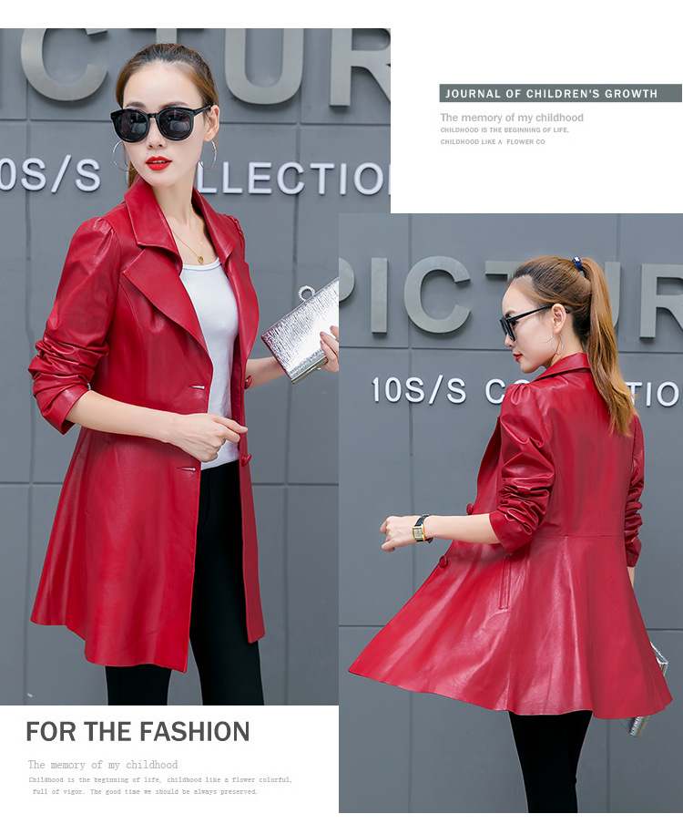 European fashion spring new ladies temperament long paragraph PU leather coat