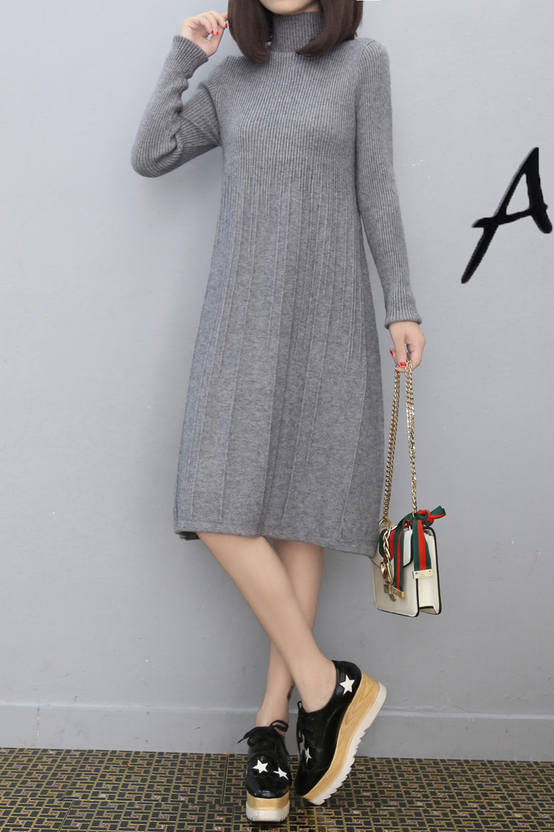 European station large size fat mm long section high-necked knitted dress sweater