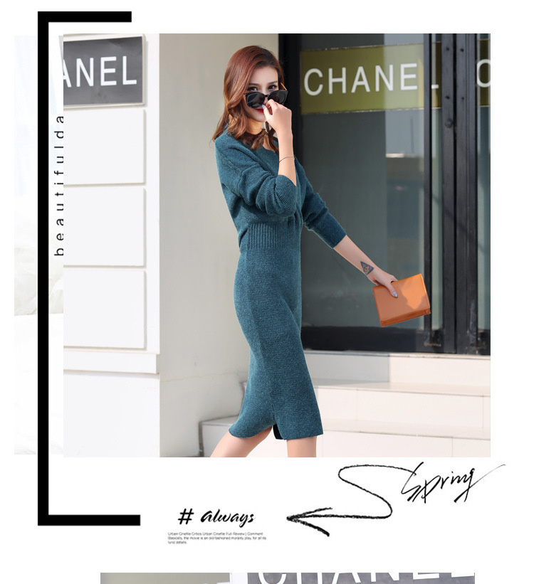 Autumn and winter Korean women’s long section of open-end bracelet sweater dress