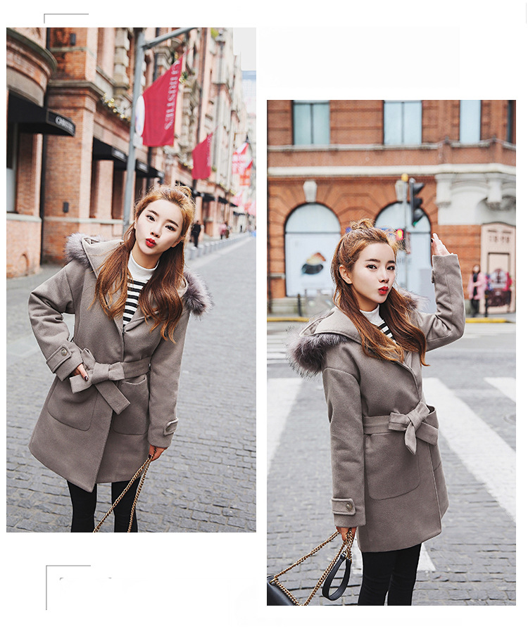 Autumn Korean version of women’s plaid woolen winter body thin long cocoon-type coat