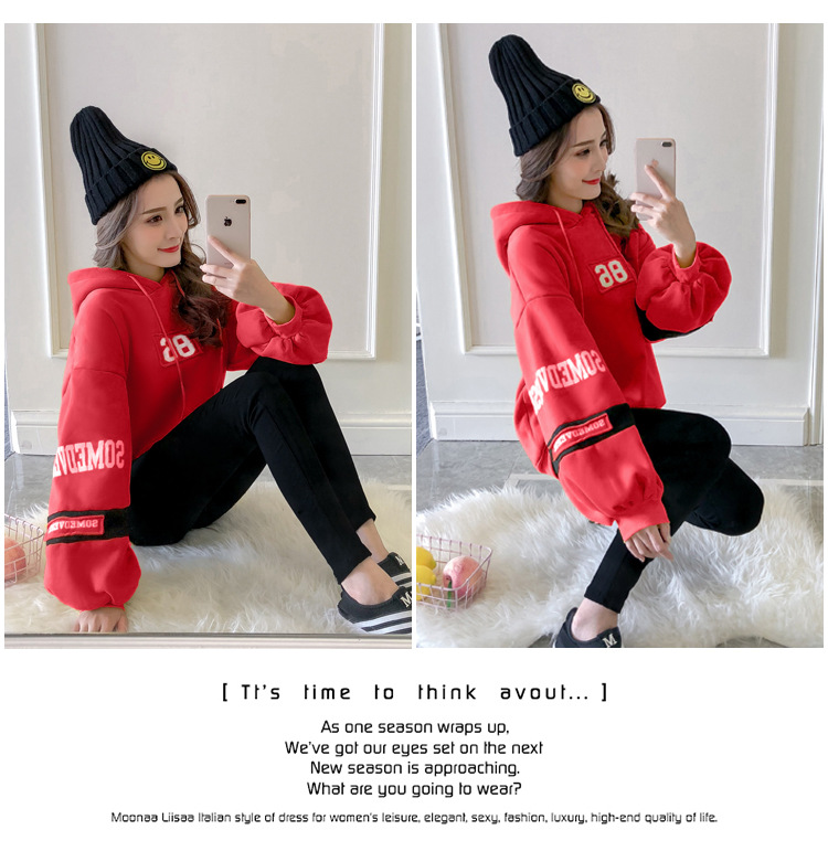 Puff Sleeve plus velvet thick women hooded new Korean wave loose autumn and winter long-sleeved jacket