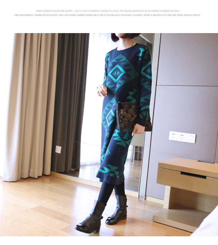 Autumn and winter dresses new European and American women’s large size long thick knit dress