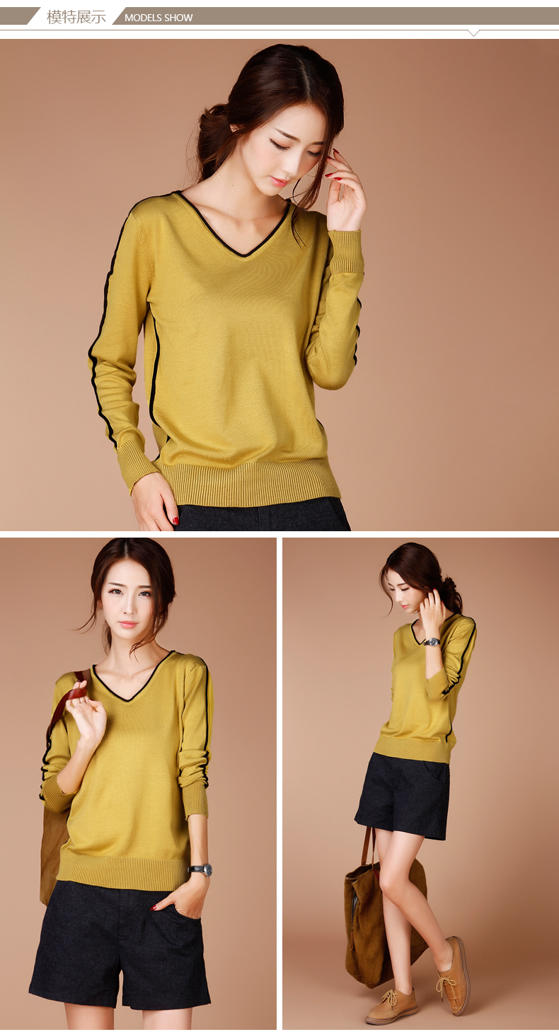 Spring new Korean version of V-neck solid color Slim sweater