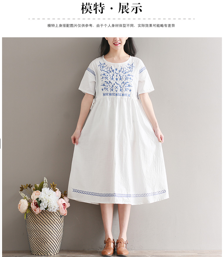 New women’s embroidery loose large size short-sleeved white cotton dress